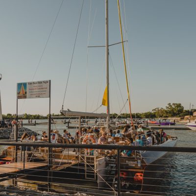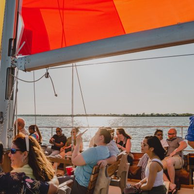 Seawolf is a beautiful 40-foot-long by 25-foot-wide sailing catamaran, hand-built of beautiful Spanish cedar. Its guest capacity is 49. It sails from the Harbor in Rockwall, where it has a private docking area between the shore and the lighthouse.